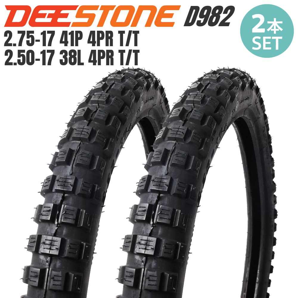 【2本セット】DEESTONE 二輪用 ブロックタイヤ D982 2.50-17&2.75-17 4PR チューブタイプ(TT)