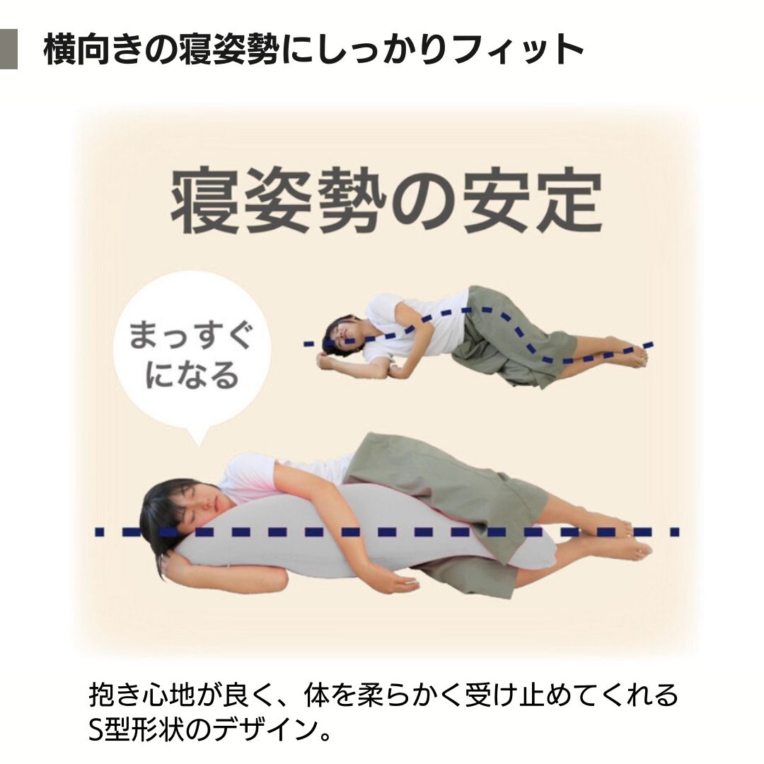 安定させるS型形状の抱き枕