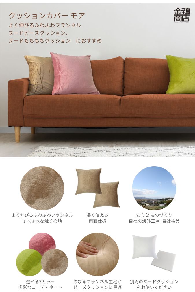 クッションカバー 45×45 おしゃれ 冬 あったか ふわふわ のびる フランネル プレゼント ギフト モア 金鵄