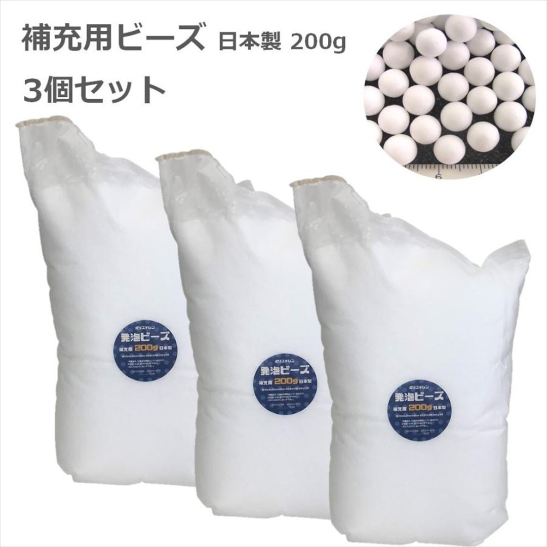 【 アウトスタイル公式 】補充用ビーズ 3mm 200g 3個 ビーズクッション 詰め替え 日本製