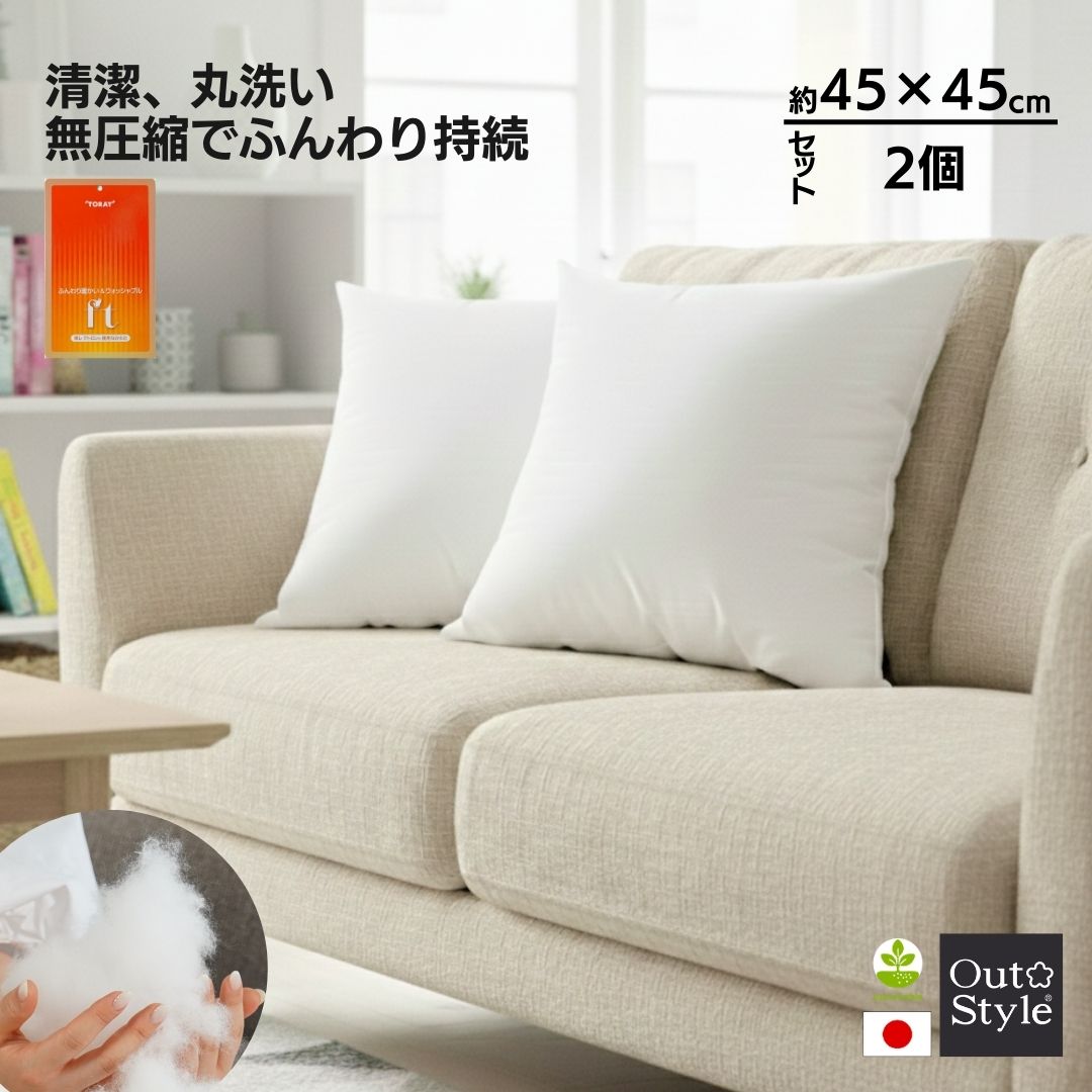 ヌードクッション クッション中身 45×45 洗える 背当て 日本製 FT わた 高反発 圧縮せずに出荷 お得 2個セット