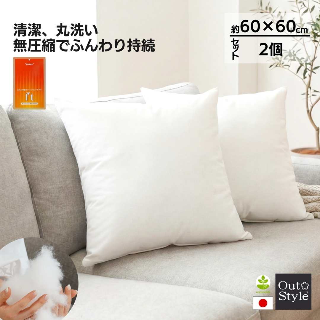 ヌードクッション 60×60 中身 日本製 東レ FT わた 洗える 高反発 背当て 圧縮せず出荷 丸洗い お得 2個セット