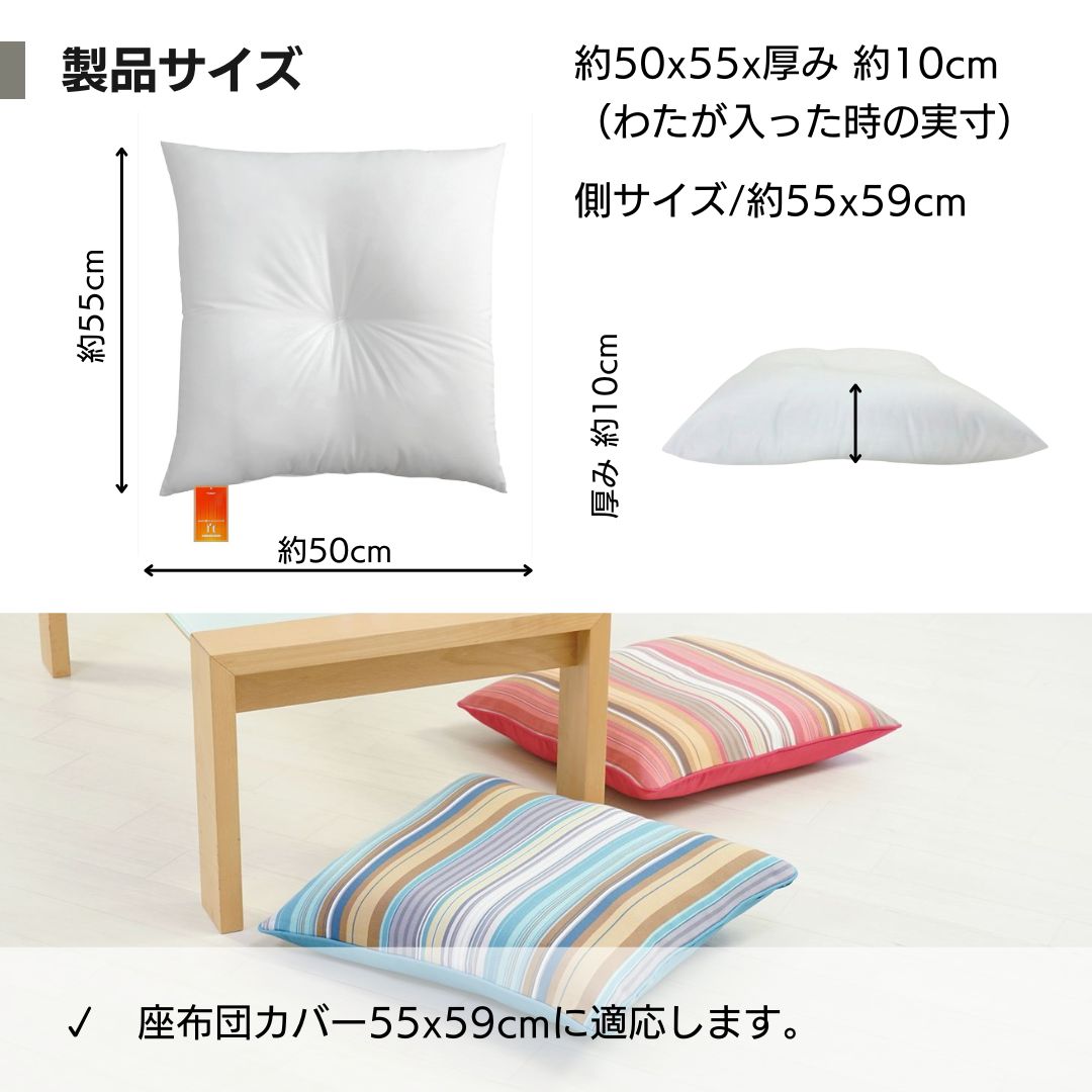ヌード座布団 ヌードクッション 55×59 銘仙判 中身 日本製 東レ FT わた 洗える 高反発 丸洗い 圧縮せずに出荷