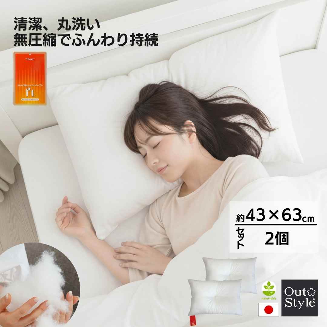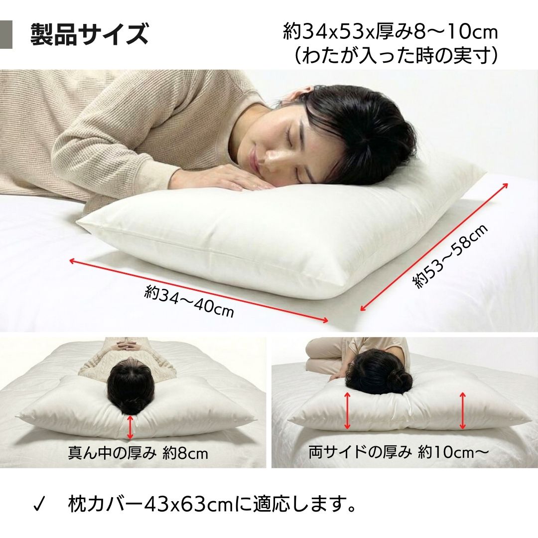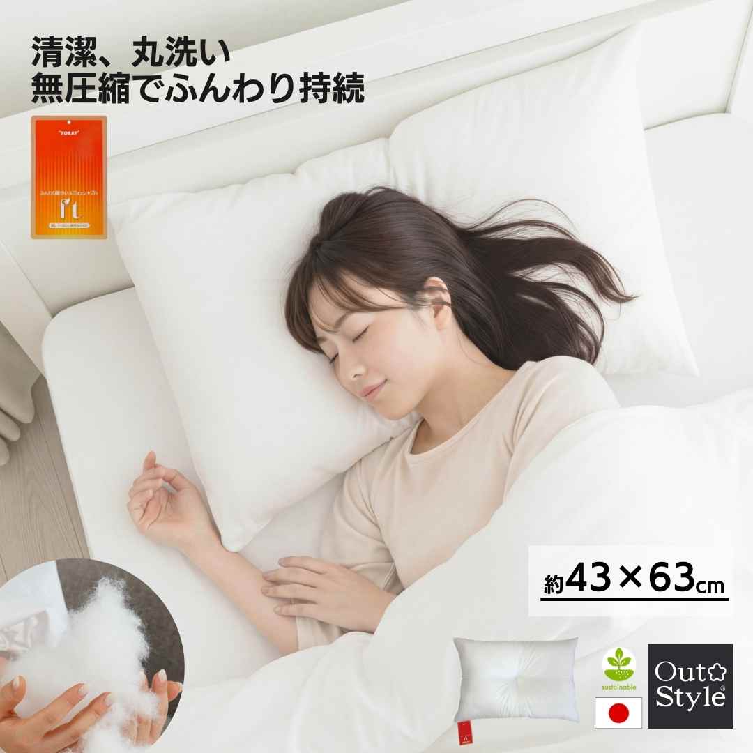 ヌードクッション枕 43×63 枕中身 ピロー 洗える 柔らかい 日本製 高反発 東レ FT わた 圧縮せずに出荷