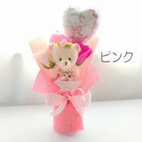 くまさんとソープフラワーとメッセージバルーンのミニブーケ 花束 誕生日 発表会 敬老の日 かわいい ぬいぐるみ ソープフラワー ギフト
