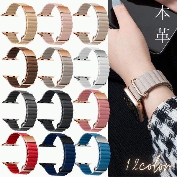 アップルウォッチ 本革 マグネット レザー apple watch バンド アップルウォッチバンド 44 革 40mm 44mm 46mm