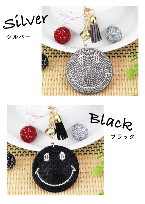 質感のいいキラキラと輝くラインストーンで彩られたスマイルモチーフのチャームリングです。