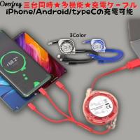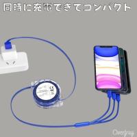 OverFrag 3台同時充電可 3in1 Micro usb type c 充電ケーブル コードリール式 急速充電 対応 旅行 便利グッズ ライトニング バッテリー用 充電コード android アンドロイド 便利 アイテム 出張 おしゃれ プレゼント コンペ 景品 ポイント消化