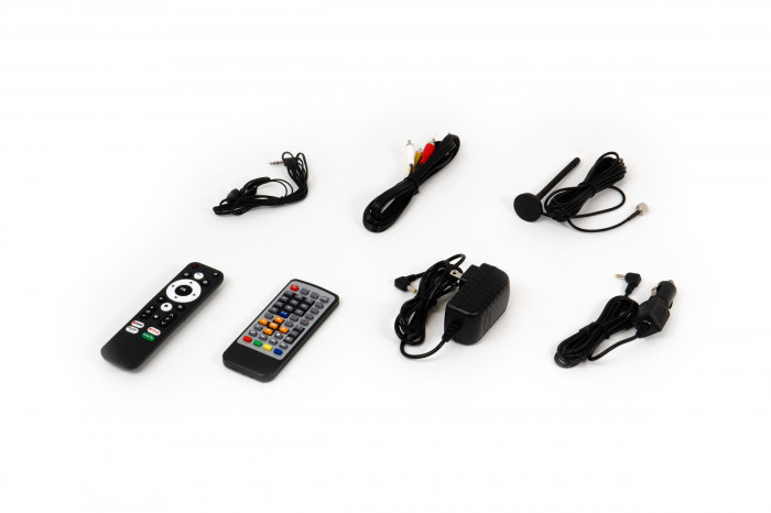 | 付属品 | ACアダプター(長さ約1.5m)、カーアダプター(長さ約1.5m)、AVケーブル(長さ1.2m)、手レビリモコン(動作確認用電池含む)、アンドロイド用リモコン(単4形乾電池×2本別途必要)、簡易アンテナ(長さ約3m)、イヤホン、車載バック、取扱説明書 |