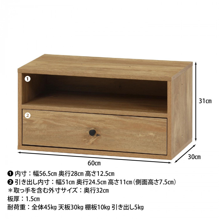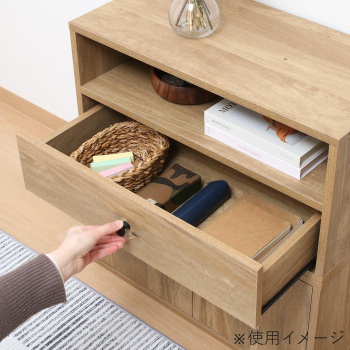 | 仕様 | 耐荷重(全体):45kg 耐荷重(天板):30kg 耐荷重(棚板):10kg 耐荷重(引出):5kg |
