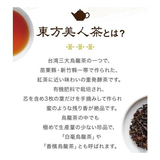 | 原材料 | 名称:烏龍茶(東方美人茶) 半発酵茶 |