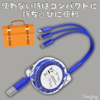 OverFrag 3台同時充電可 3in1 Micro usb type c 充電ケーブル コードリール式 急速充電 対応 旅行 便利グッズ ライトニング バッテリー用 充電コード android アンドロイド 便利 アイテム 出張 おしゃれ プレゼント コンペ 景品 ポイント消化