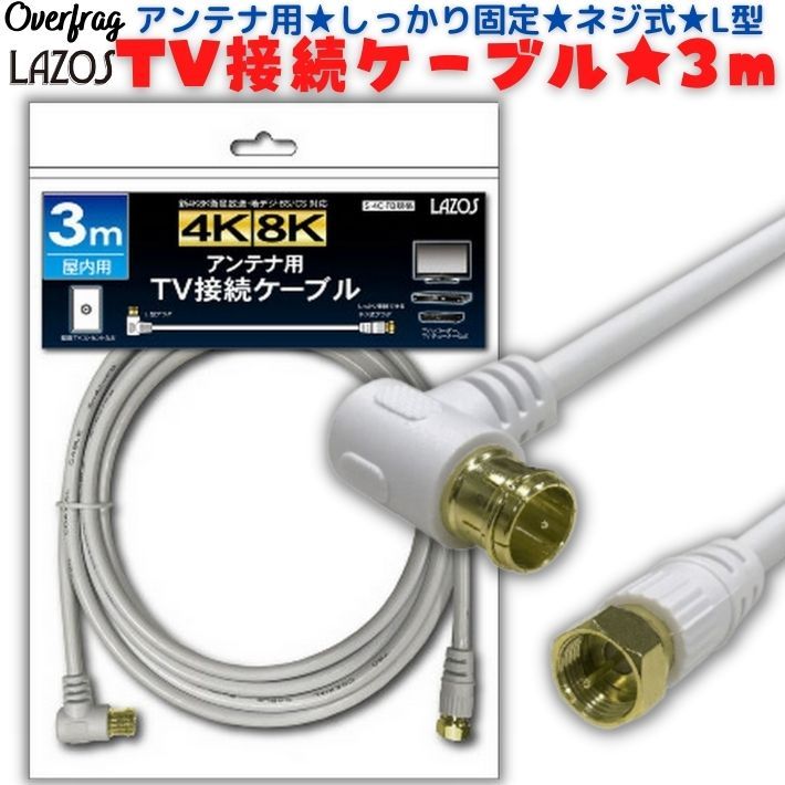 LAZOS アンテナケーブル 3m 4K 8K 地デジ BS CS 対応 S-4C-FB規格 高品質 同軸ケーブル 低減衰ケーブル 4k対応 8K対応 テレビ BS CS 地デジ 衛星放送 アンテナ ケーブル コード TV テレビコード テレビ線 AVケーブル テレビ買い替え 新居 テレワーク 引っ越し 買い回り 送料無料 ポイント消化