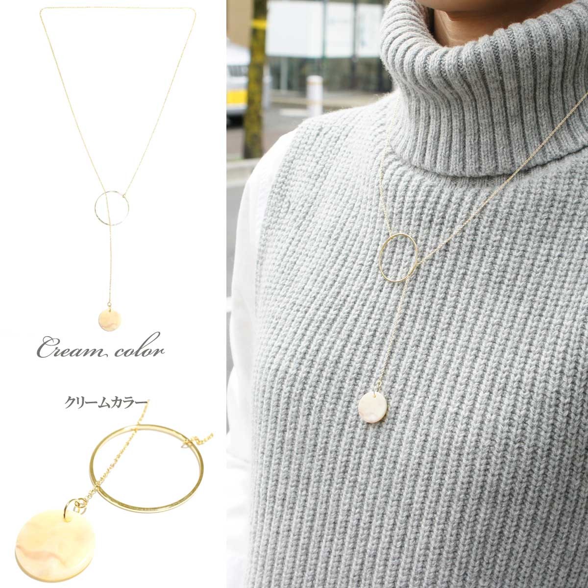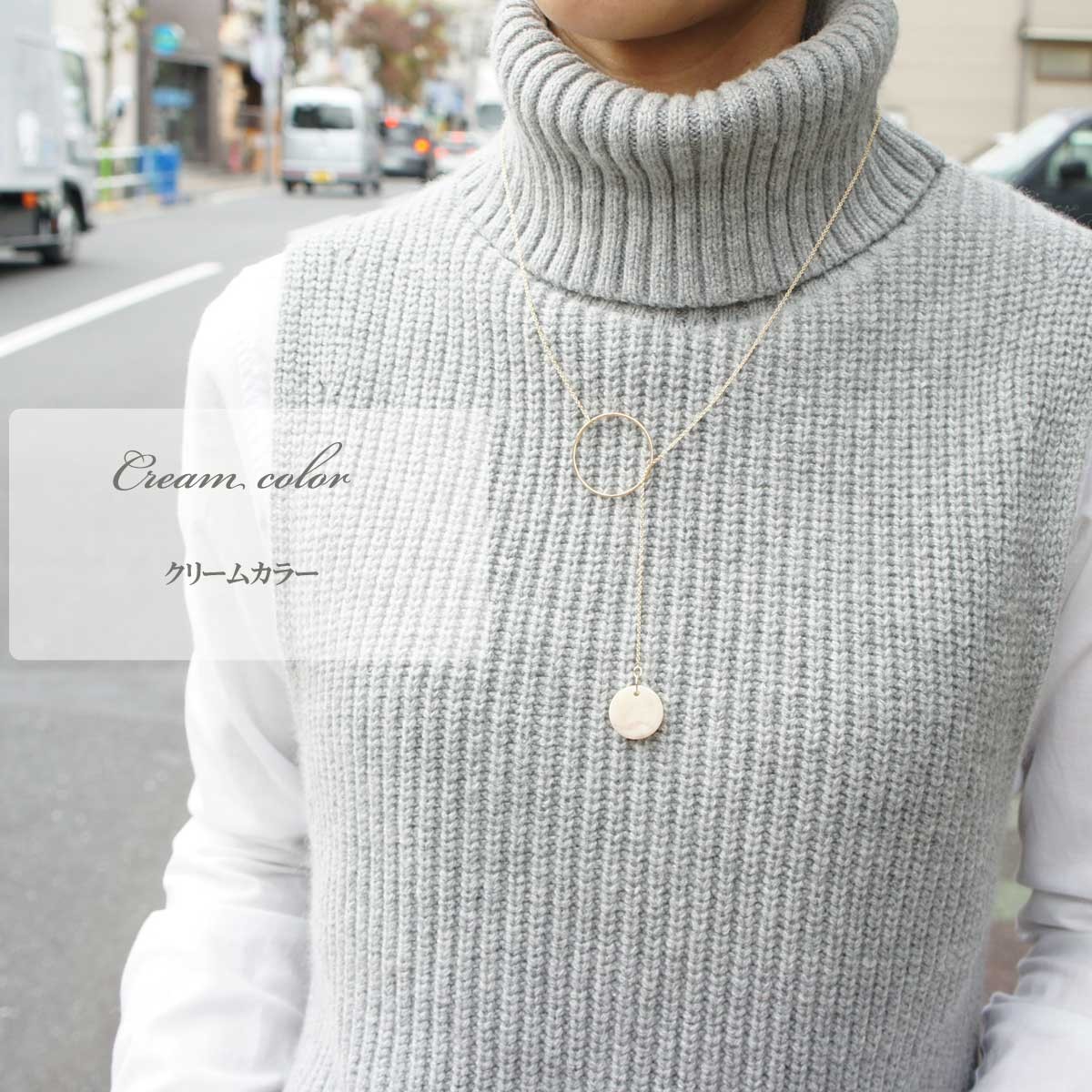 全長60cmあるラリエットネックレスは秋冬のコーデの上からワンポイントに最適なデザイン