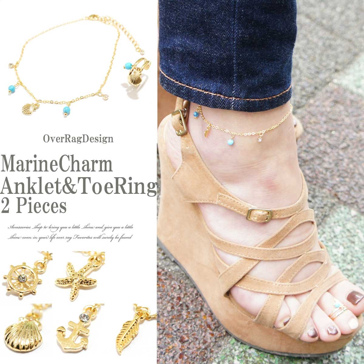 人気トレンドのマリンチャームが大人可愛いデザインでアンクレットとトゥーリングのセット!