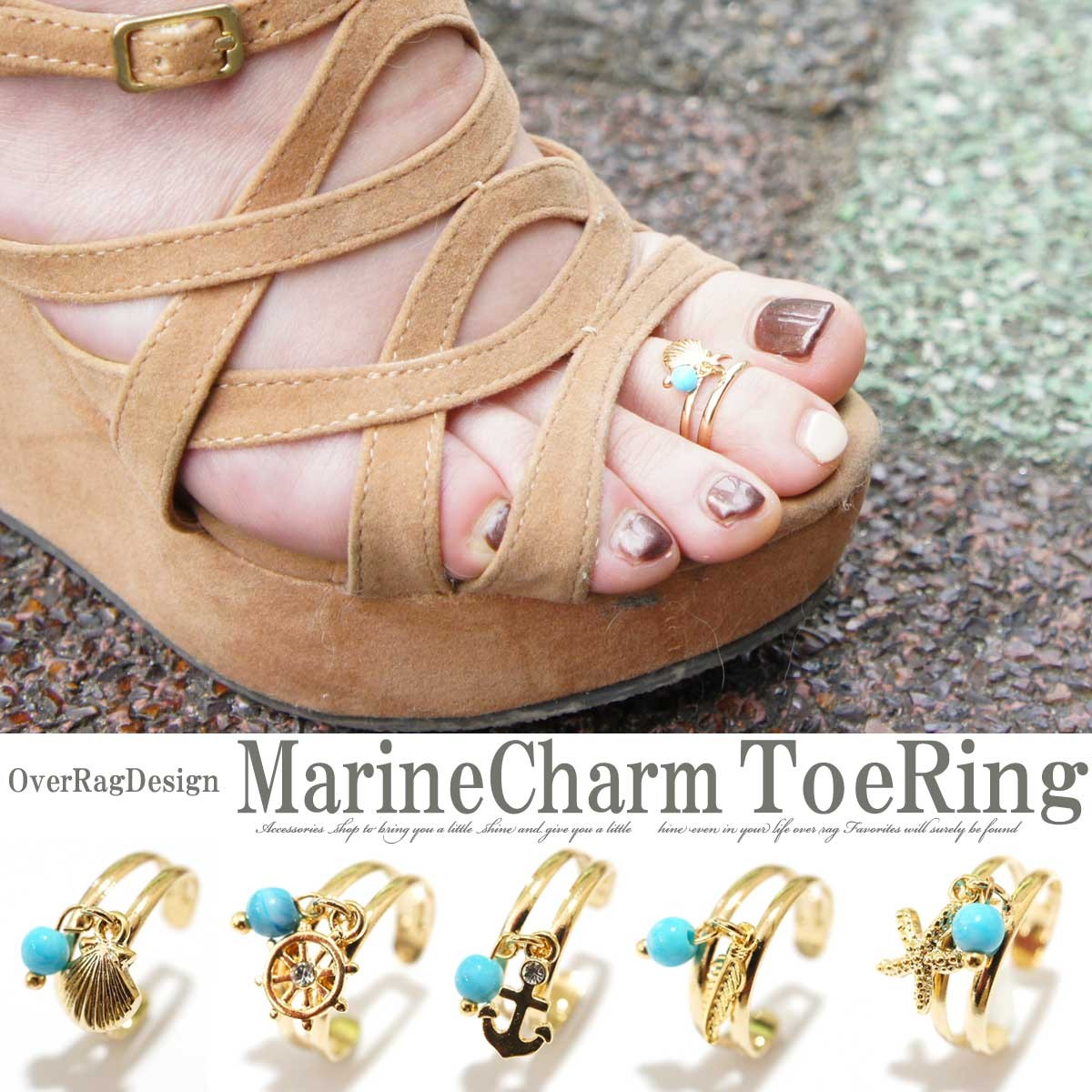 トゥリング ゴールド トゥーリング ピンキーリングゴールド 足指にもマリン! マリンチャームトゥーリング マリン ボヘミアン ターコイズ