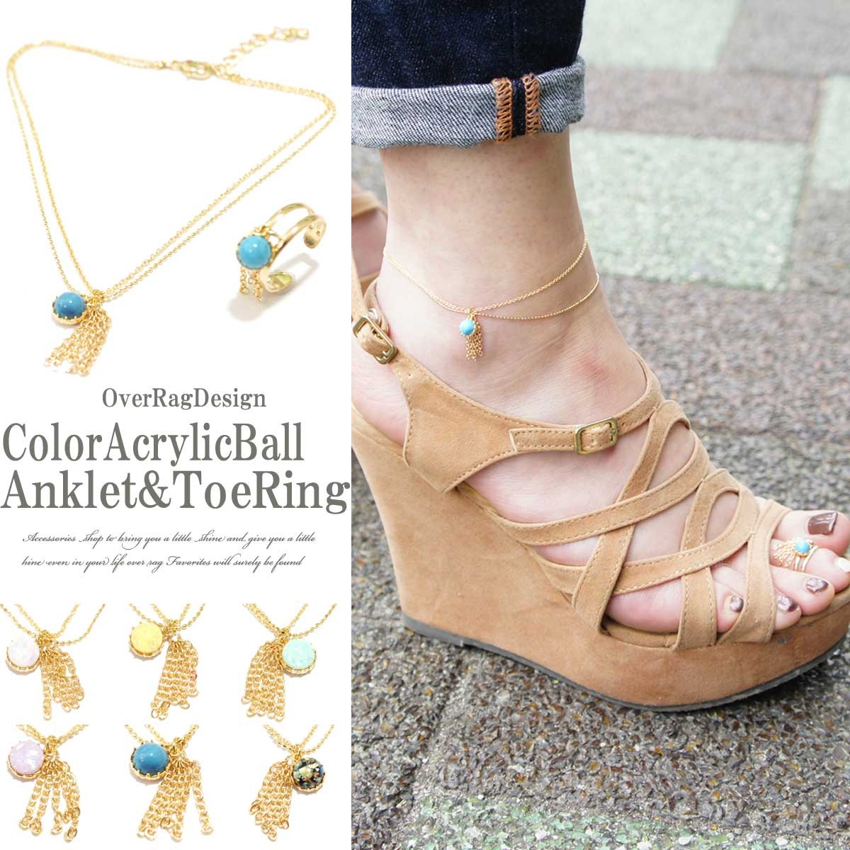 トゥリング ゴールド トゥーリング ピンキーリングゴールド カラーアクリルチャームチェーンタッセルアンクレット&トゥーリング 送料無料 アンクレット
