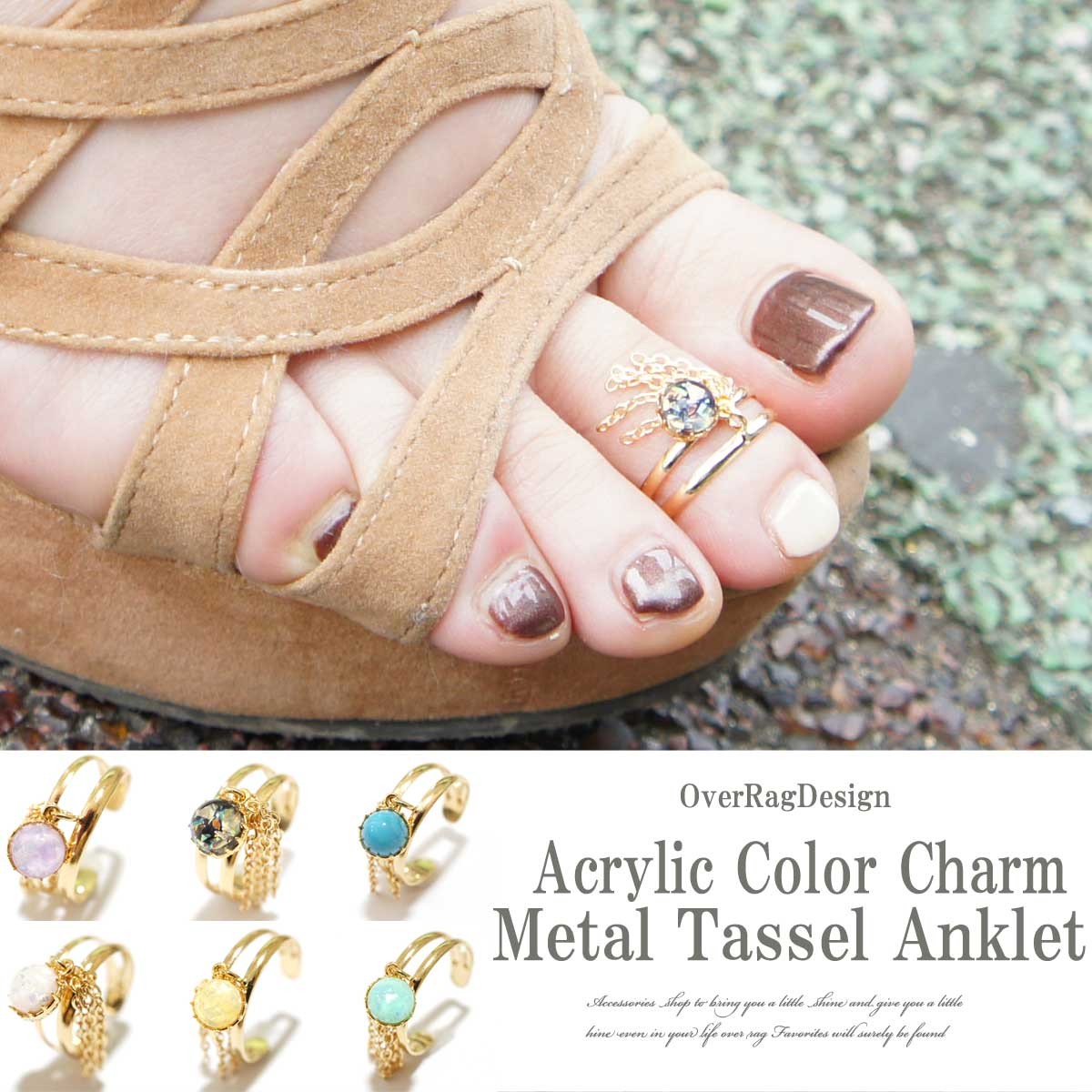 トゥリング ゴールド トゥーリング ピンキーリングゴールド オシャレトゥーリング! アクリルチャームチェーンタッセルトゥリング