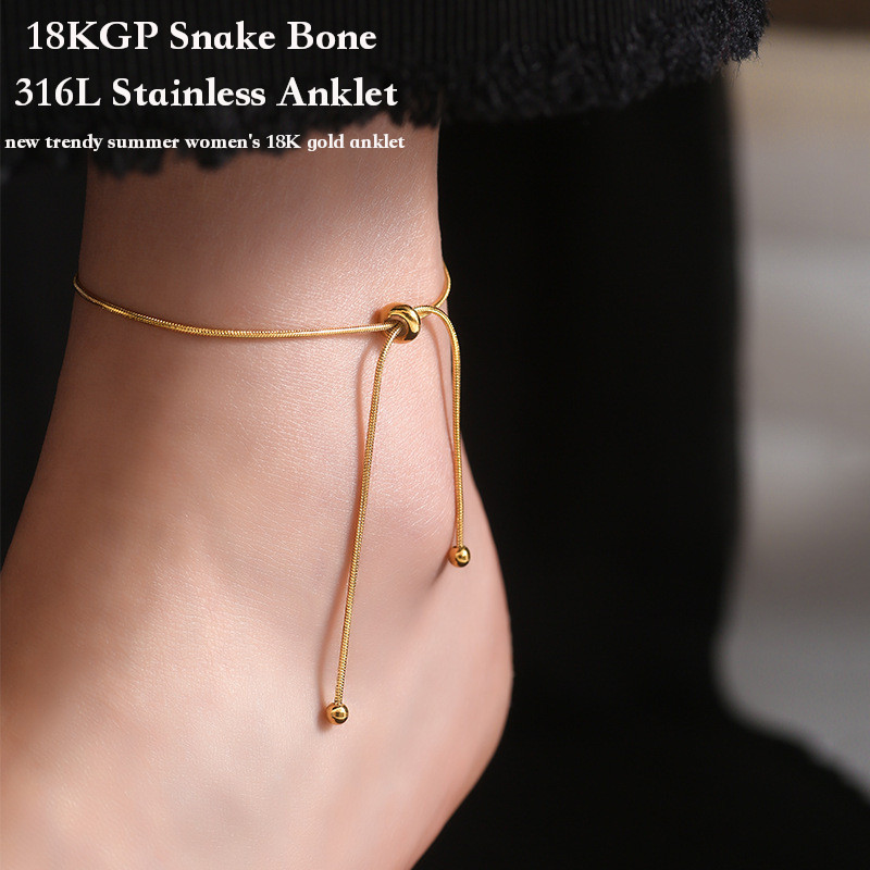 つけっぱなしok サージカルステンレス アンクレット ブレスレット 18KGPスネークボーン316Lステンレスアンクレット k18 18金コーティング ゴールド 316L製