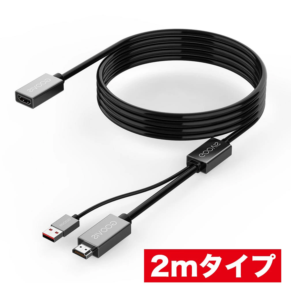 GOOVIS 専用ケーブル、長さ2メートル 片側HDMIメス、片側二本線(HDMIオス+USB給電用)