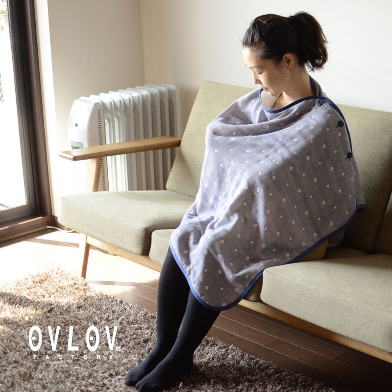 授乳ケープ 肩掛け ひざ掛け ガーゼ ネイビー ドット 水玉 オブラブ ベビーブランケット 日本製 cpb-4013-nv