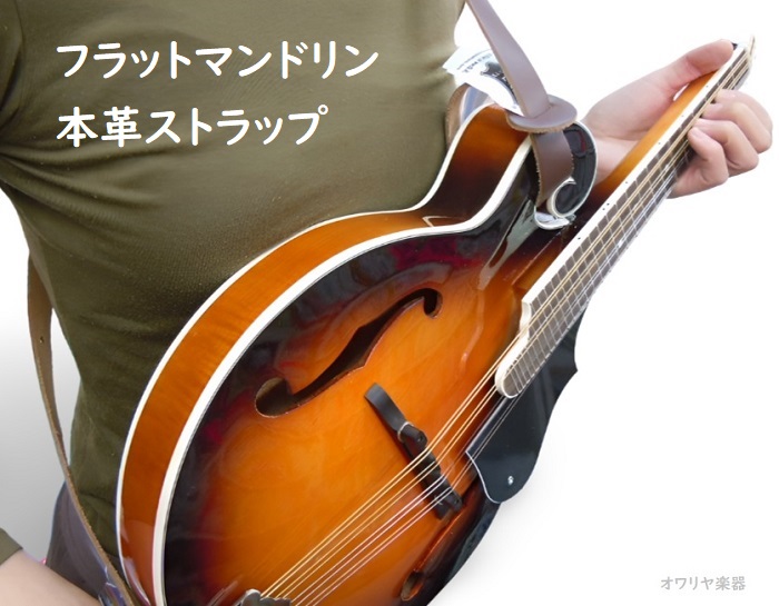 2cm幅と細身で、柔らかな革製ストラップ。 奏者の体に馴染み、ストラップのゴワツキがないので、自然体でフラットマンドリンを持つことができます。
