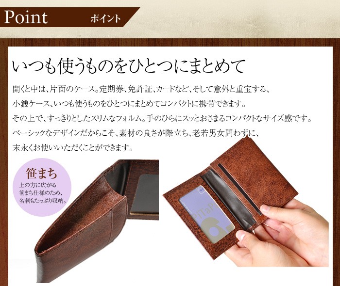 笹マチにファスナー付き小銭入れを付けました。上質の牛革で丁寧に仕上げています。