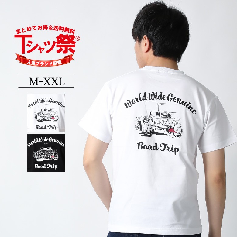 Tシャツ メンズ 半袖 ブランド アメカジ ホットロッド 黒 白 大きいサイズ M L XL XXL 3L プリント 車 ロゴ カットソー
