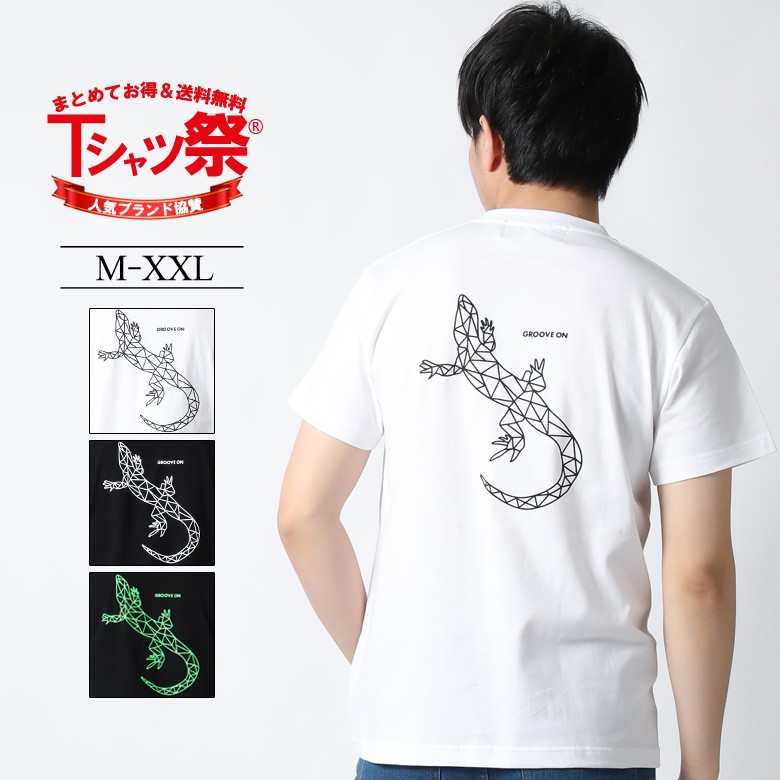 Tシャツ メンズ 半袖 大きいサイズ ブランド ストリート アメカジ サーフ 春 夏 黒 白 トカゲ バックプリント ロゴ 2l 3l