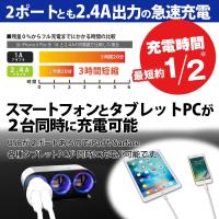 ・2台同時に急速充電に対応の4.8A(2.4A+2.4A)のシガーソケット充電器