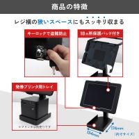 商品特長 | ・店頭での受付やデジタルサイネージとして大活躍 ・ネック部分が360°回転してどの角度にも調整可能 ・盗難対策用キーロック ・保護クッションや滑り止めラバー付き ・発券プリンターがぴったり搭載できるトレイが付属 |
