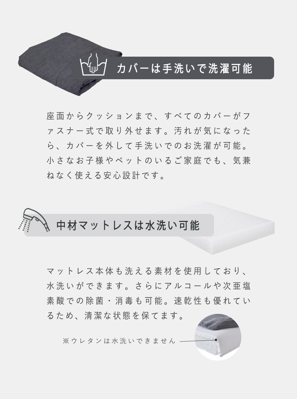※ウレタンフォームは水洗いできません。