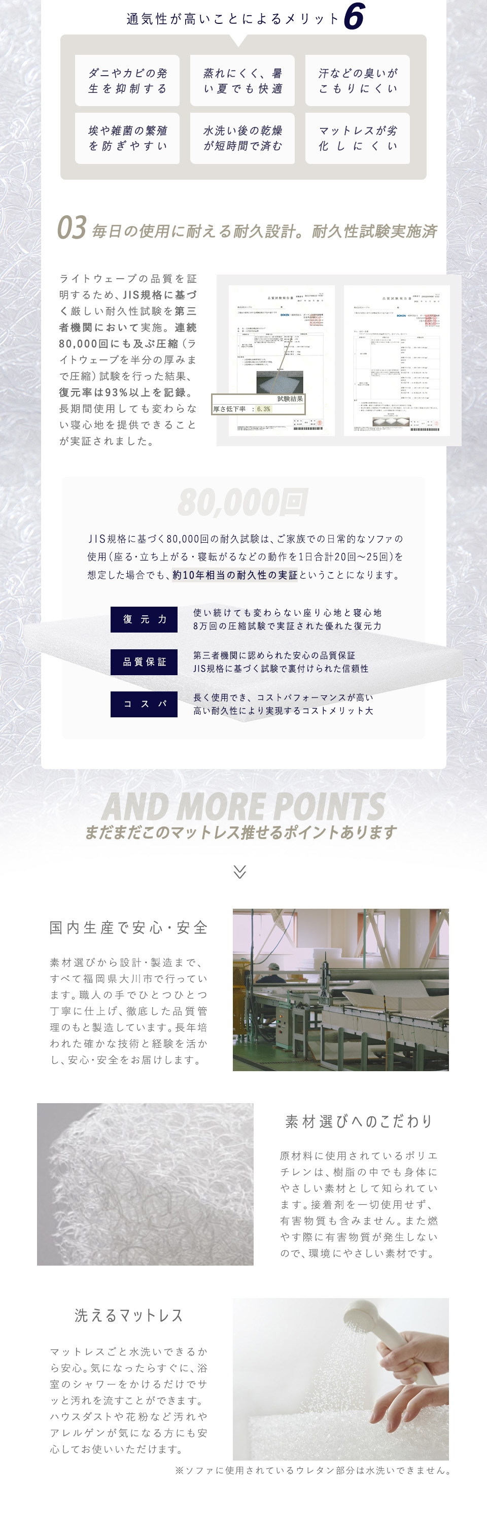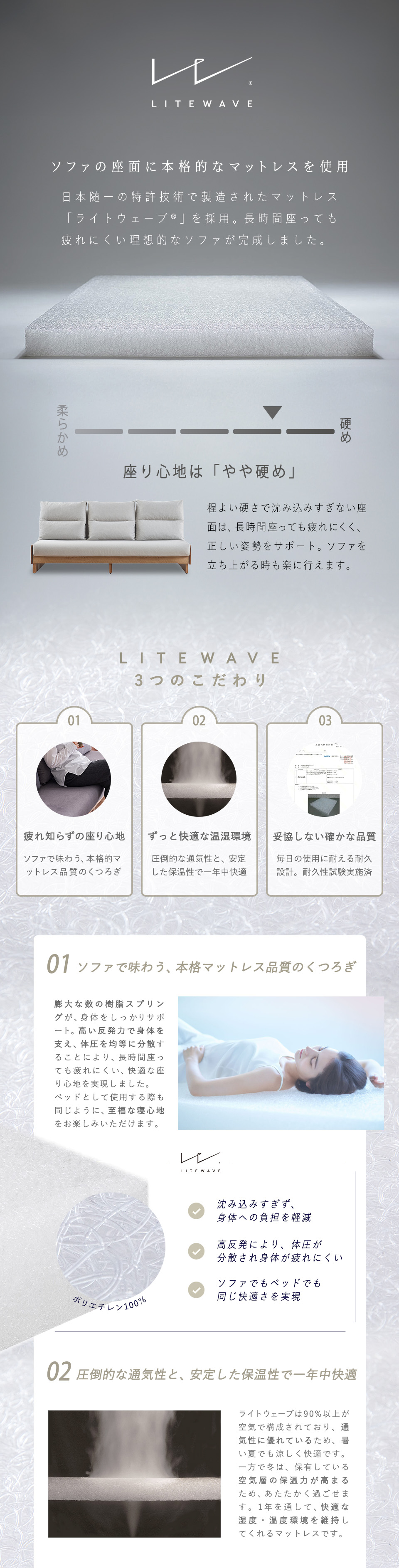 [ マットレス中材 ] ライトウェーブ(ポリエチレン100%)、ウレタンフォーム
