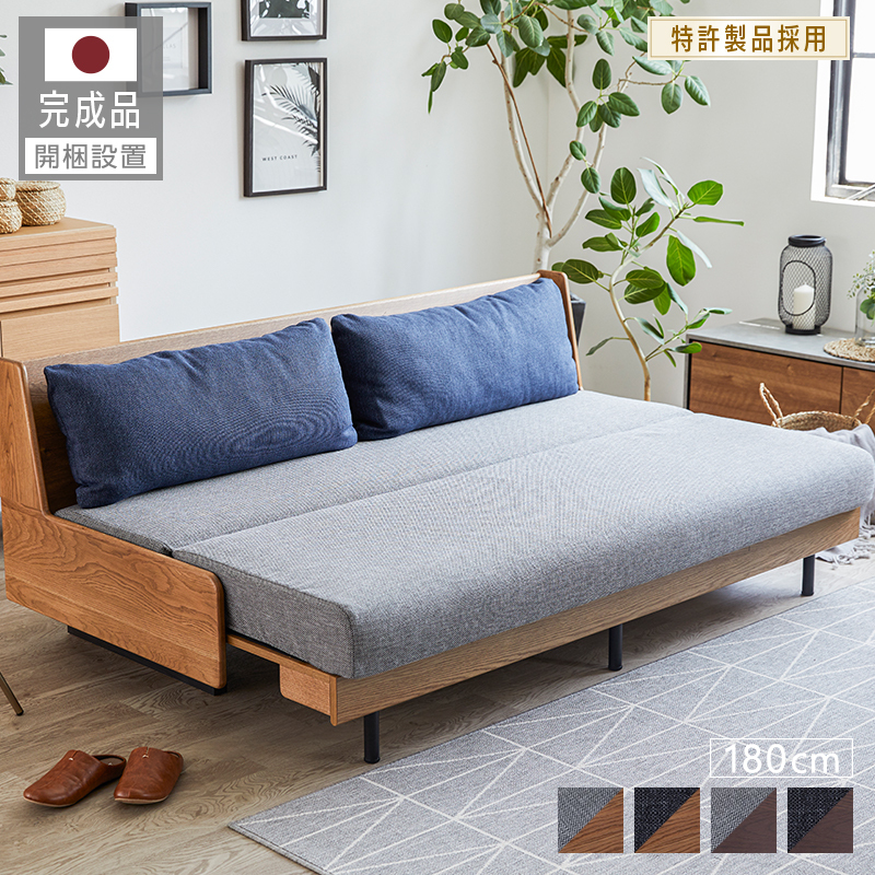 特許製品採用 ソファ ソファーベッド ソファベッド 3人掛け 3人 180cm おしゃれ 完成品 日本製 国産 グレー ブラウン ペース 大川家具