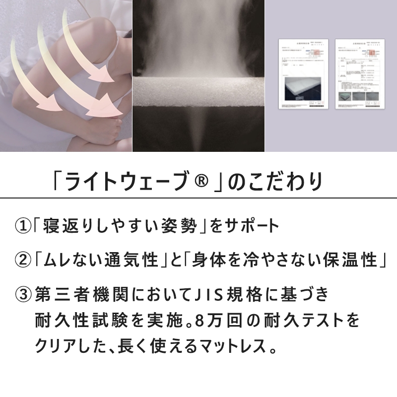 ■マットレス中材:ライトウェーブ(ポリエチレン100%)、ウレタンフォーム