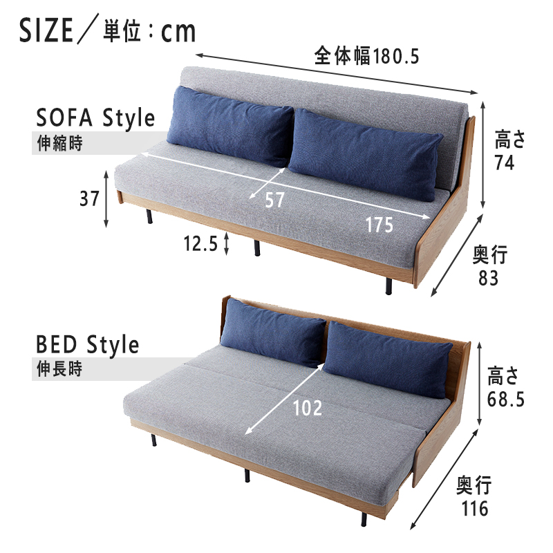 ■伸縮時:幅:180.5 奥行:82 高さ:74 (cm)