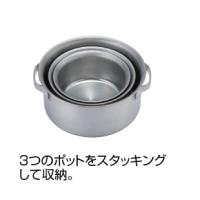 ●総重量3.5kg(1)20cmポットサイズ:幅240x奥行220x高さ100mm x厚さ1.8mm 重量:1387g 材質:ステンレス(2)20cmリッドサイズ:直径220×高さ15x厚さ1.0mm 重量:301g 材質:ステンレス(3)16cmポットサイズ:幅180x深さ78mm x厚さ1.8mm 重量:662g 材質:ステンレス(4)16cmリッドサイズ:直径180×高さ15x厚さ1.0mm 重量:208g 材質:ステンレス(5)14cmポットサイズ:幅160x高さ76mm x厚さ1.8mm 重量:533g 材質:ステンレス(6)14cmリッドサイズ:直径160×高さ15x厚さ1.0mm 重量:165g 材質:ステンレス(7)リフターサイズ:直径135×奥行40x高さ35mm 重量:168g 材質:アルミニウム(8)収納袋重量:75g 材質:綿