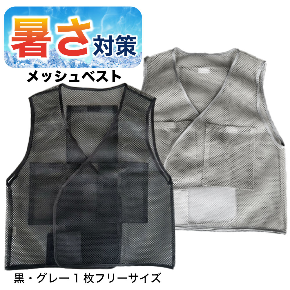 冷却ベスト メッシュ ベスト本体のみ 熱中症対策 猛暑 通気性抜群 ファン付きウェア インナー 作業着 ブラック/グレー フリーサイズ