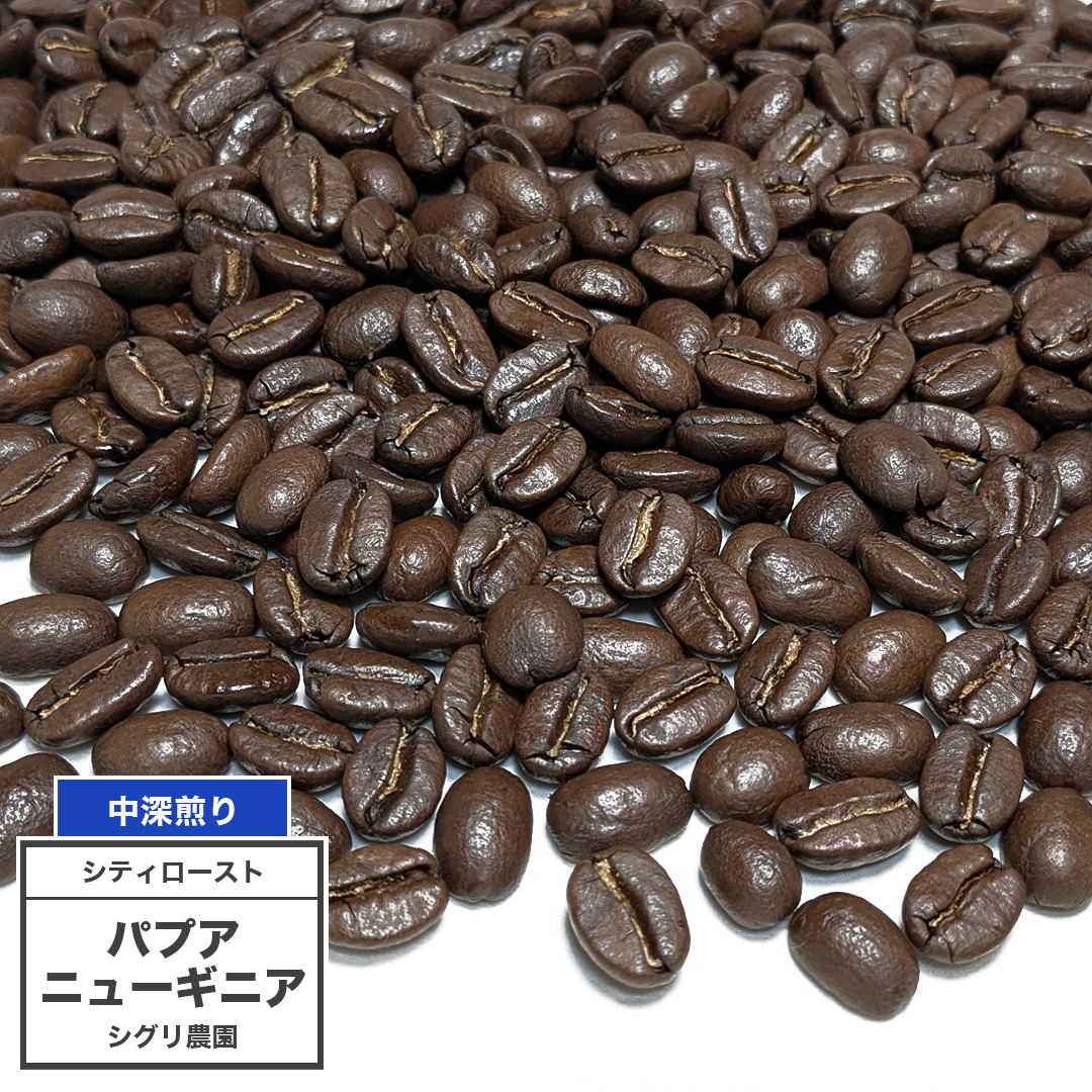 パプアニューギニア AA シグリ農園(中深煎り:5°/シティロースト)パプアニューギニア・ワギバレーの名門シグリ農園で栽培された高品質アラビカ種を中深煎り焙煎したコーヒー豆です。