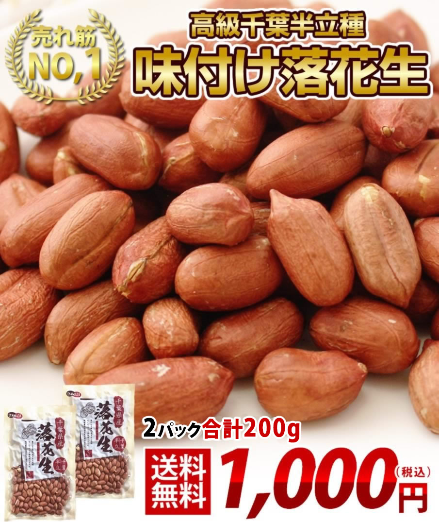 千葉半立 素煎り or 味付け 落花生 200g(100g×2) ピーナッツ お試し品 おつまみ ALL¥1000 送料無料 千葉県産落花生使用 ゆうパケット
