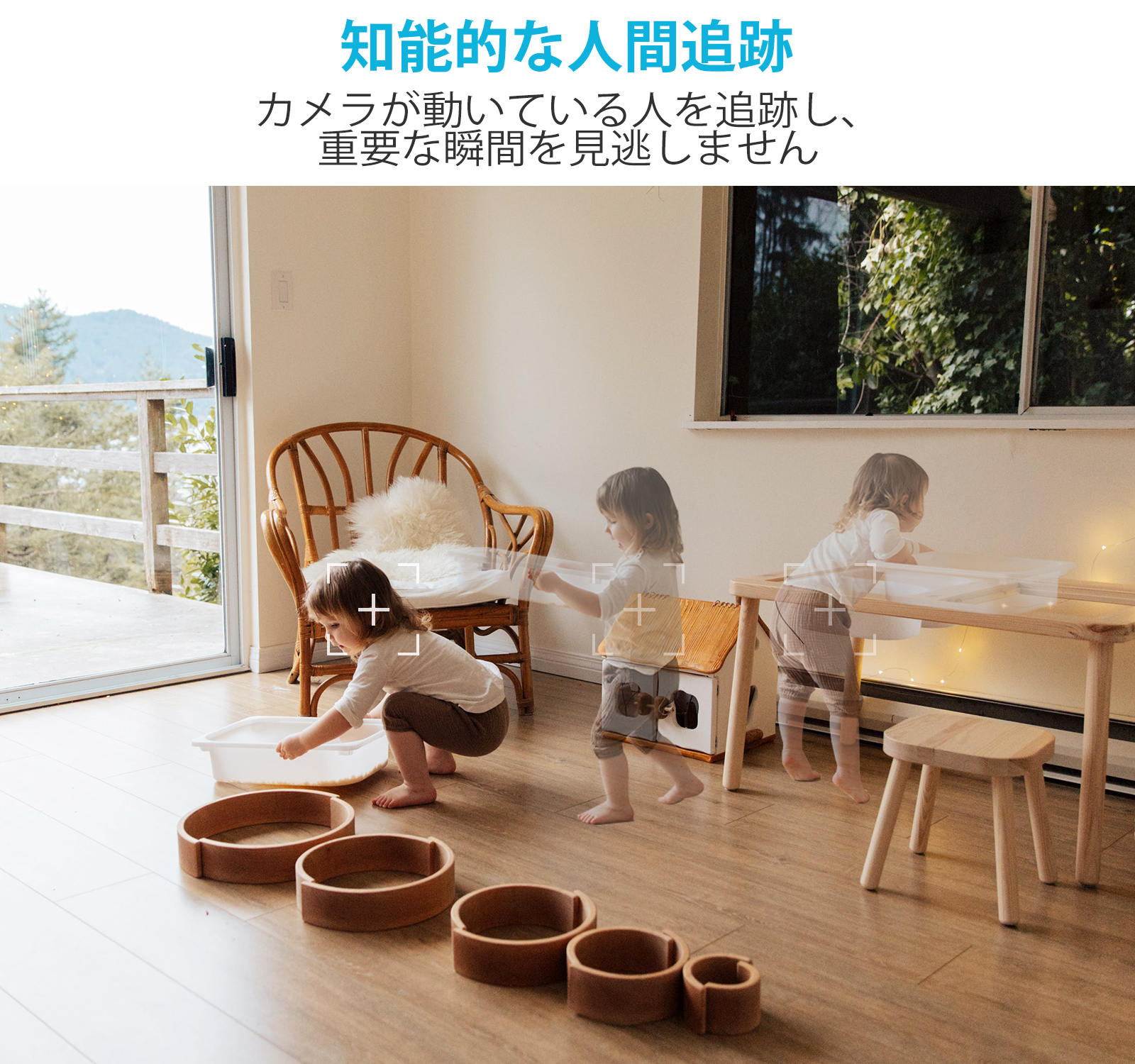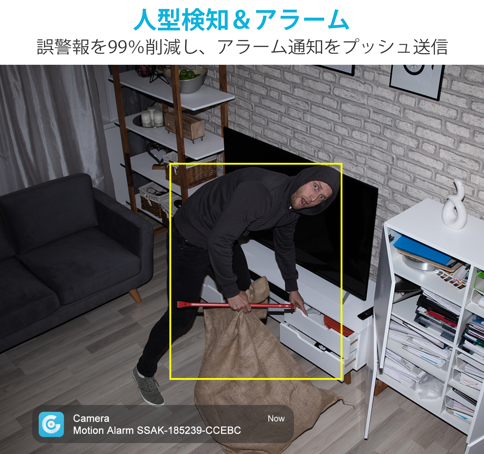 1)AI人体検知:木や葉や動物や車等動体が動いても、警告は反応しません。監視範囲内に、人体の形を自動的にフォローして、動き状況が把握できます。