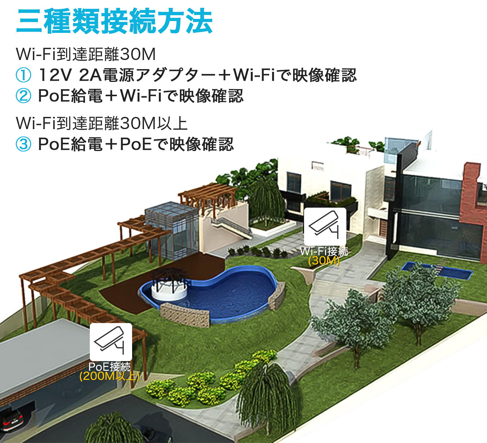 2)高画質500万画素:防犯カメラ 家庭用設置は500万画素の高性能CMOSセンサーを搭載し、高画質で撮影できます.
