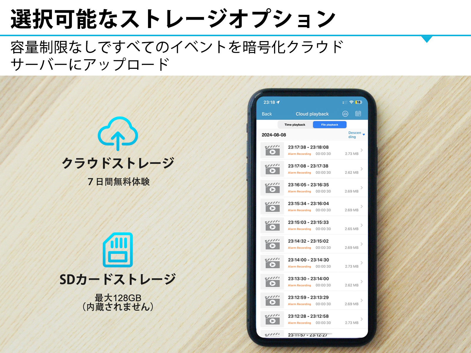 カメラは上書き機能が付き、古いデータの自動削除・上書き録画を繰り返します。
