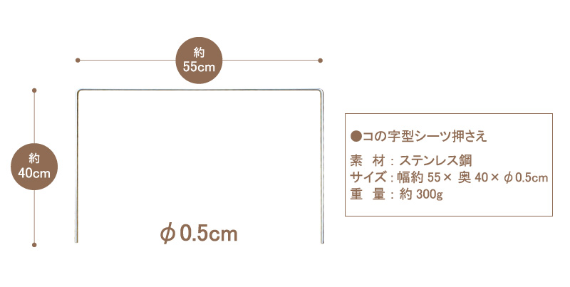 コの字型ステンレスアームタイプのシーツ押さえのみの販売ページです。