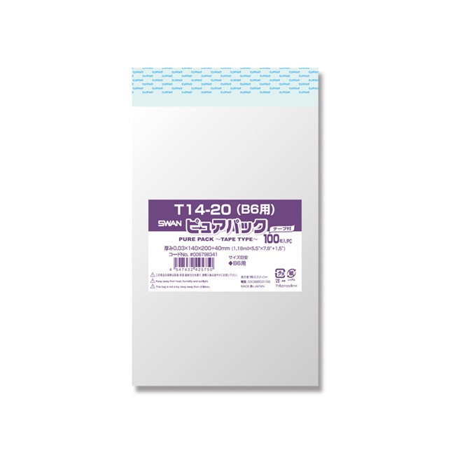 “メール便対象” OPP袋 ピュアパック テープ付 T14-20 B6用 100枚