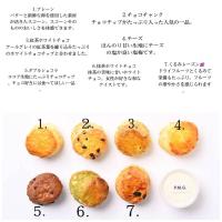 プレーン、チョコチャンク、ダブルショコラ、紅茶ホワイトチョコチップ、抹茶ホワイトチョコチップ、くるみオーガニックレーズン、チーズの全7種をたっぷり2個ずつでお届け!