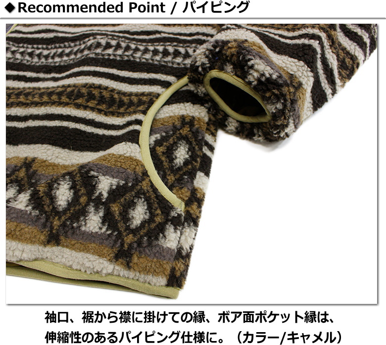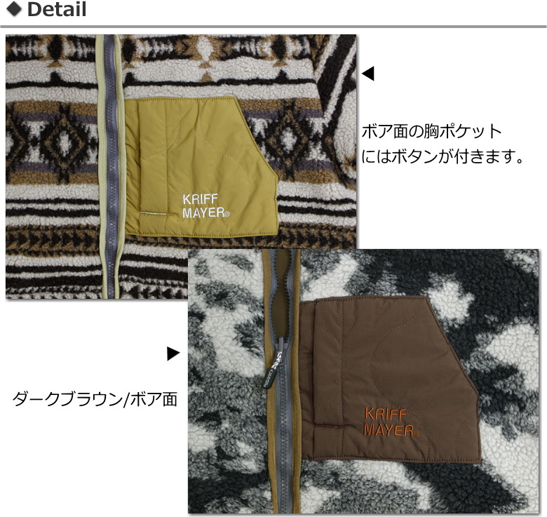 シャギーボアフリース面が裏側にくるので高い保温性を発揮します。