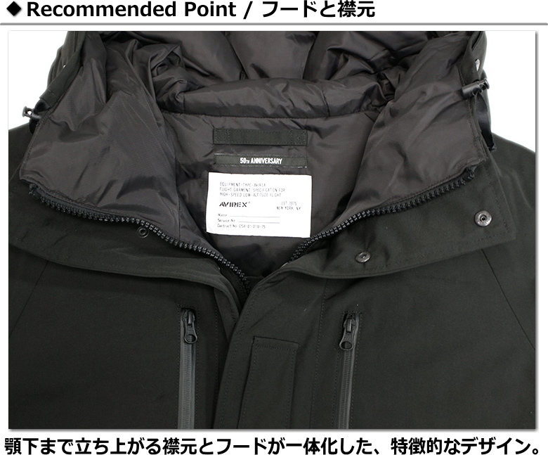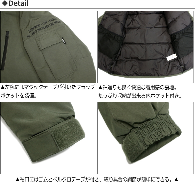 ■高度な技術と専門知識を活かして、数々のフライトジャケットをアメリカ空軍に納入した実績を持つAVIREXが作りだすダウンジャケット!