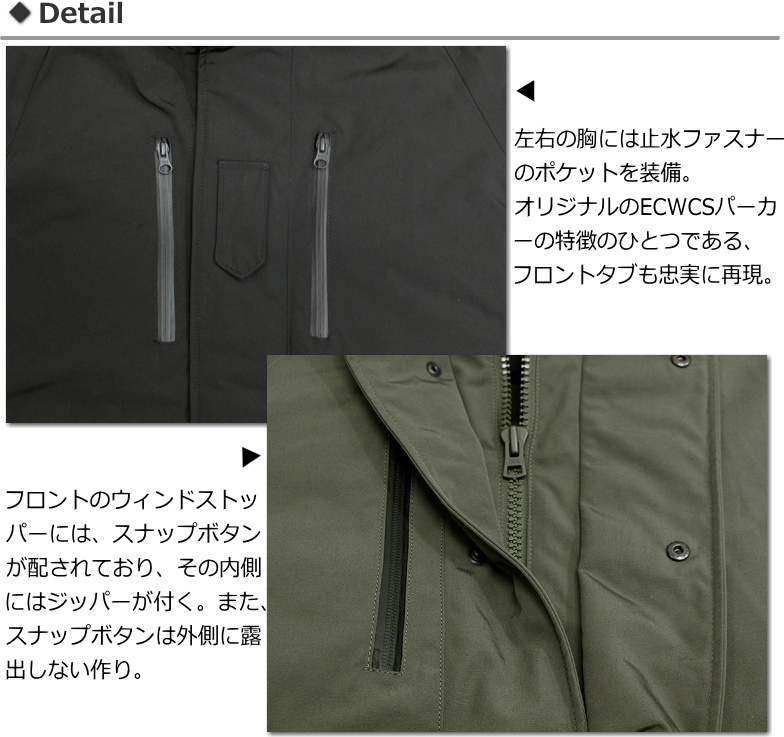 【ECWCSとは】 1980年代にアメリカ軍に採用されている極寒冷地被服システム(Extended Cold Weather Clothing System)の略称。