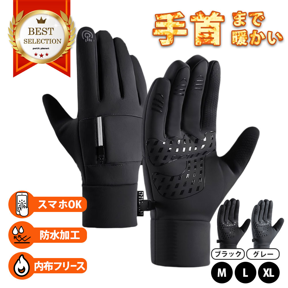 手袋 防寒 防水 自転車 スマホ メンズ レディース スマホ対応 シンプル 防風 撥水 おしゃれ グローブ あたたかい 裏起毛 裏フリース タッチパネル
